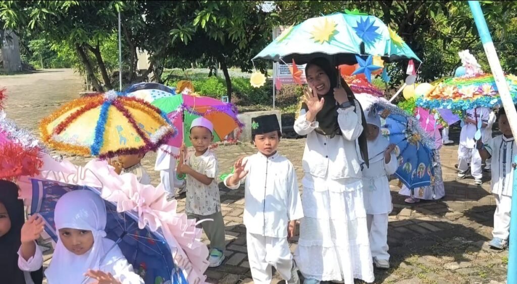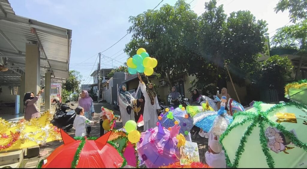 Parade dimulai dari halaman sekolah, melewati jalan di sekitar lingkungan, dan kembali lagi ke sekolah. Sepanjang perjalanan, anak-anak disambut hangat oleh warga sekitar yang melambaikan tangan dan tersenyum melihat semangat para santri kecil. Beberapa orang tua tampak mengambil foto dan video untuk mengabadikan momen indah tersebut.Yang membuat parade ini istimewa, setiap payung dihias dengan hasil karya anak-anak bersama orang tua di rumah. Ada yang menempelkan potongan kertas warna, kain perca, hingga gambar bintang dan bulan sabit. Semua tampak unik dan menggambarkan keceriaan khas dunia anak-anak.